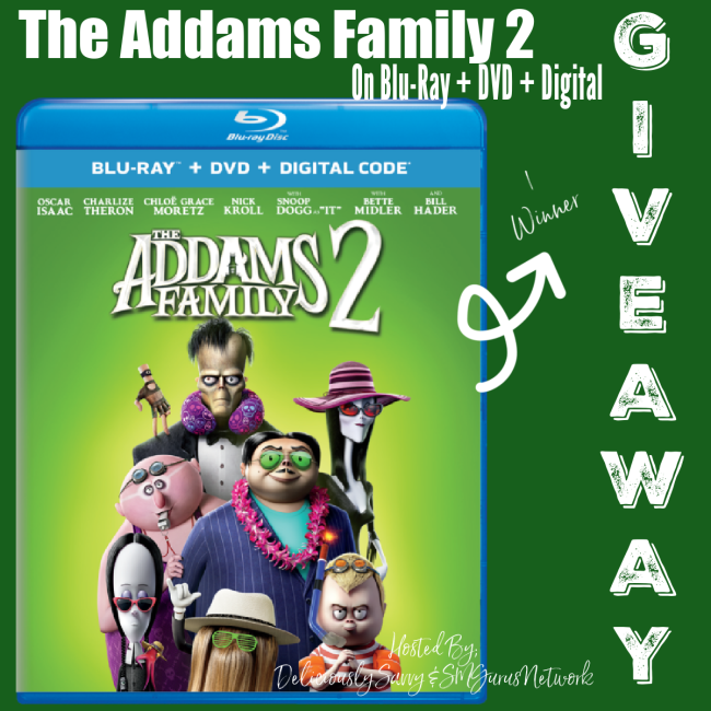 1 Winner will win a copy of The Addams Family 2 via Blu-Ray + DVD + Digital!